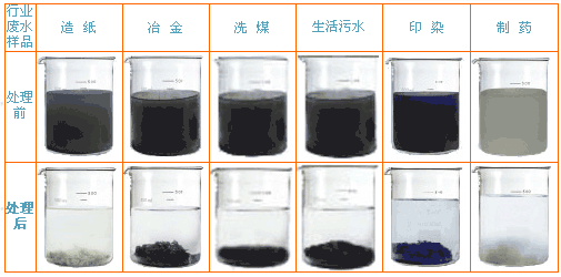 7、本產品應用于環保、工業廢水的處理,使用方法與制水廠大體相同,對高色度、高COD、BOD、的原水處理,輔以助劑作用效果甚佳。
